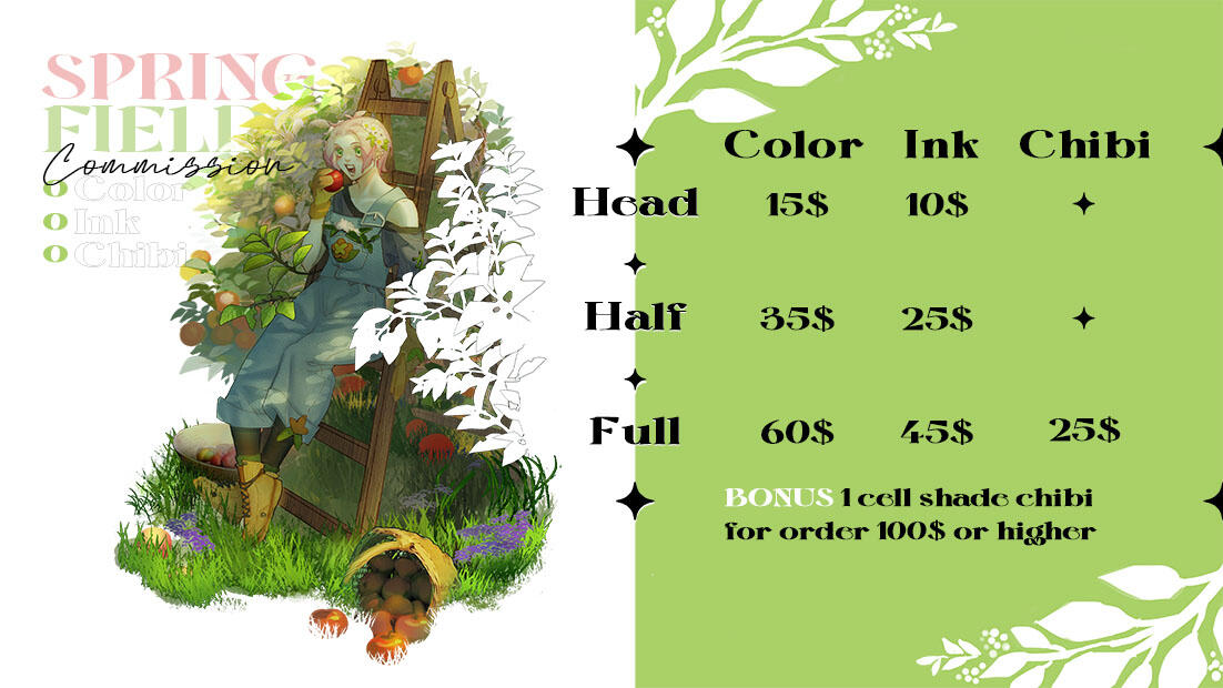2. Additional price of details, effects or background will be discussed in sketching phase. All change afterward will cost extra.